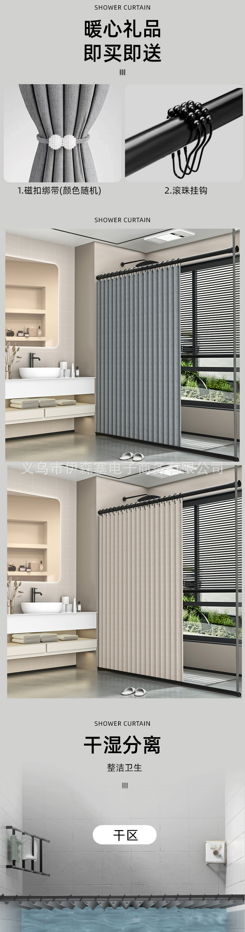 Foldable Shower Curtain Perforation-Free Bathroom Dry And Wet Separation Partition Curtain Waterproof And Mildew-Resistant Linen Magnetic Shower Curtain Door Curtain